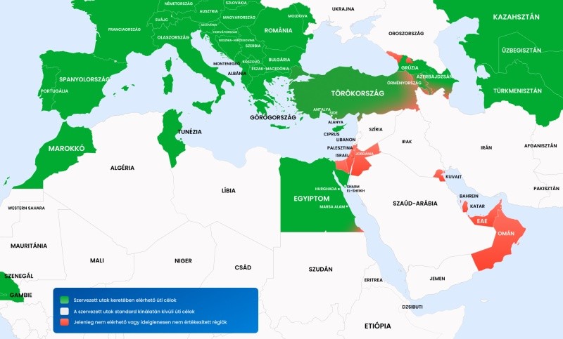Újraindulás: Az utazási figyelmeztetés feloldása után azonnal újraindítjuk a közel-keleti átszállásos járatokat. A légitársaságok már előkészítették a programjaikat, így bármikor lehetséges a gyors visszatérés. Döntéseinket továbbra is a Külügyminisztérium aktuális értékelésére alapozzuk.