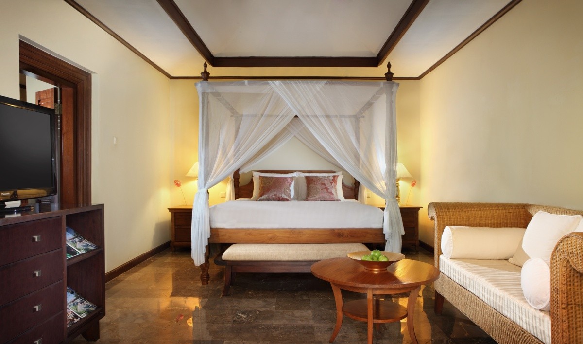 Ausstattung: Im balinesischen Stil erbautes Hotel. Tropische Gartenanlage, 4 Swimmingpools, Liegen, Sonnenschirme, Badetücher, Sonnenterrasse. Empfangsbereich, Rezeption, 2 Restaurants, 3 Bars, WLAN. Landeskategorie: 4 Sterne, 199 Zimmer.