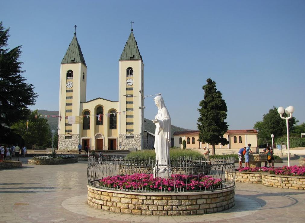 Szent Jakab plébániatemplom: A zarándokok találkozóhelye. A település az 1980-as évek elején vált népszerűvé. Gyerekek beszámolója szerint 1981. június 24-én a Crnica hegyén jelent meg előttük először Szűz Mária, hogy a békéről, a hitről és az imáról közvetítsen üzenetet. Azóta minden hónap 25. napján egy-egy új üzenetet kap innen a világ. Katolikus zarándokok milliói látogatnak ezért az egyébként mindössze 4500 – többségében horvát – lakosú Međugorjéba. A város fő templomában, a Szent Jákob templomban rendszeres imaórákat és lelki programot tartanak.A templom különlegessége a 7 méter magas, bronzból készült Feltámadt Krisztus-szobor, amelyet a szlovén művész, Andrej Ajdiae készített. A szobornak csodatevő erőt tanusítanak, mert állítólag könnyeket hullajtott.