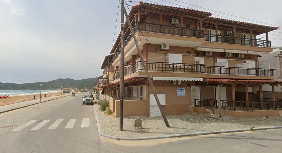Az apartmanház Sarti új részén (Village) fekszik a tengerparti sétányon, Sarti ófalujának központjától kb 400 méterre található.
