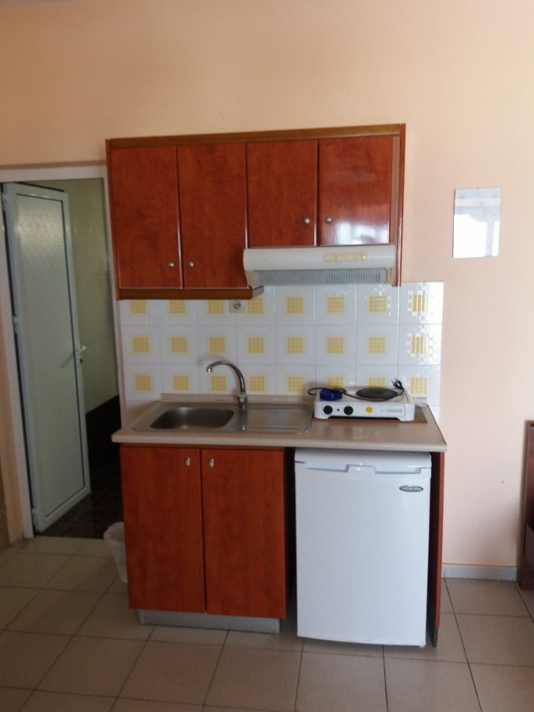 - 2 ágyas oldalról tengerre néző stúdió: kisméretű emeleti stúdió, melyben kisméretű franciaágy és konyhasarok egy légtérben kapott helyet.