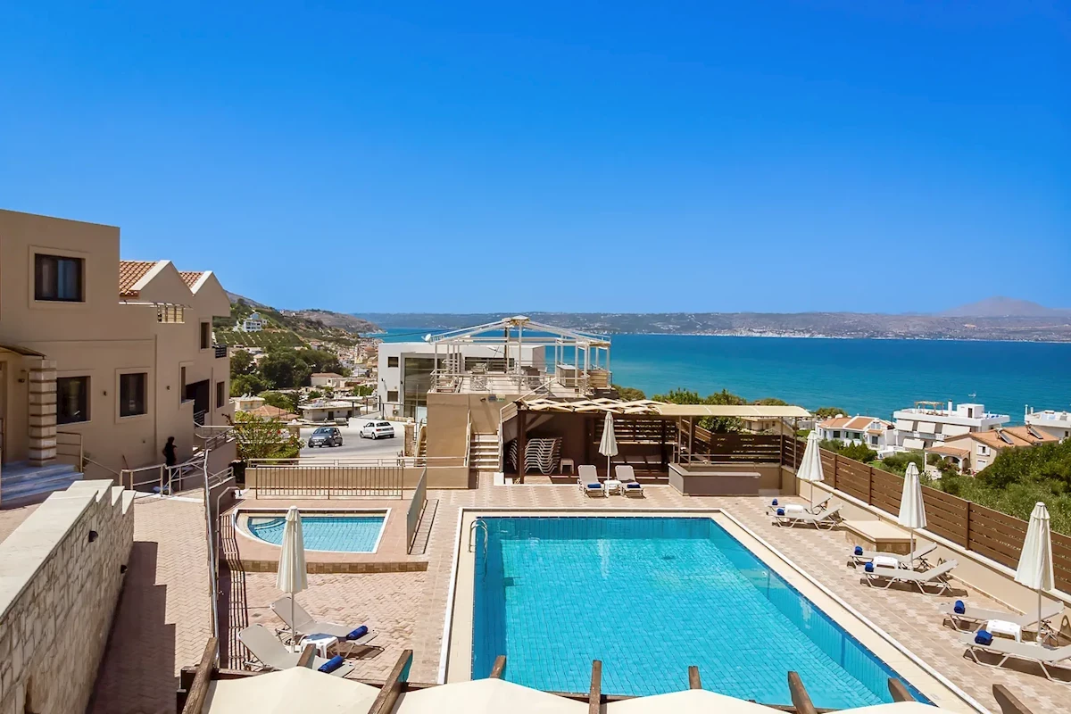 A Sunrise Suites & Apartments mindössze néhány perc sétára található Kalyves homokos strandjától, Kréta északi partján. A szálloda két szabadtéri úszómedencével és egy külön gyermekmedencével rendelkezik. Légkondicionált apartmanokat kínál TV-vel, széffel, bútorozott erkéllyel vagy terasszal, teljesen felszerelt konyhasarokkal és hajszárítóval ellátott fürdőszobával. A helyszíni éttermekben helyi specialitásokat és friss tengeri ételeket szolgálnak fel. A bárokban harapnivalókat és különféle italokat kínálnak.