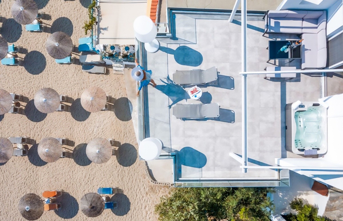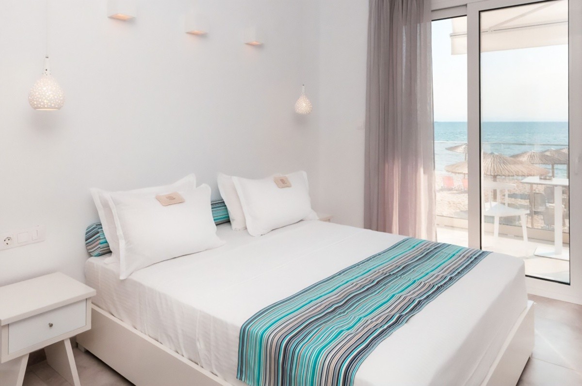 Modern szálloda közvetlenül a Potos strand mellett, az azonos nevű üdülőhely központjának közelében.