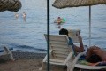 A strand szédítő 50 méterre volt a szállodától. És igen, homokos és kavicsos volt, így a vízicipő kötelező volt. A fizetős napozóágyak mellett a közelben ingyenes napernyők is voltak, amelyek alá le lehetett teríteni egy matracot, takarót vagy törölközőt (a megfelelő törlendő). Biztonságban éreztem magam.