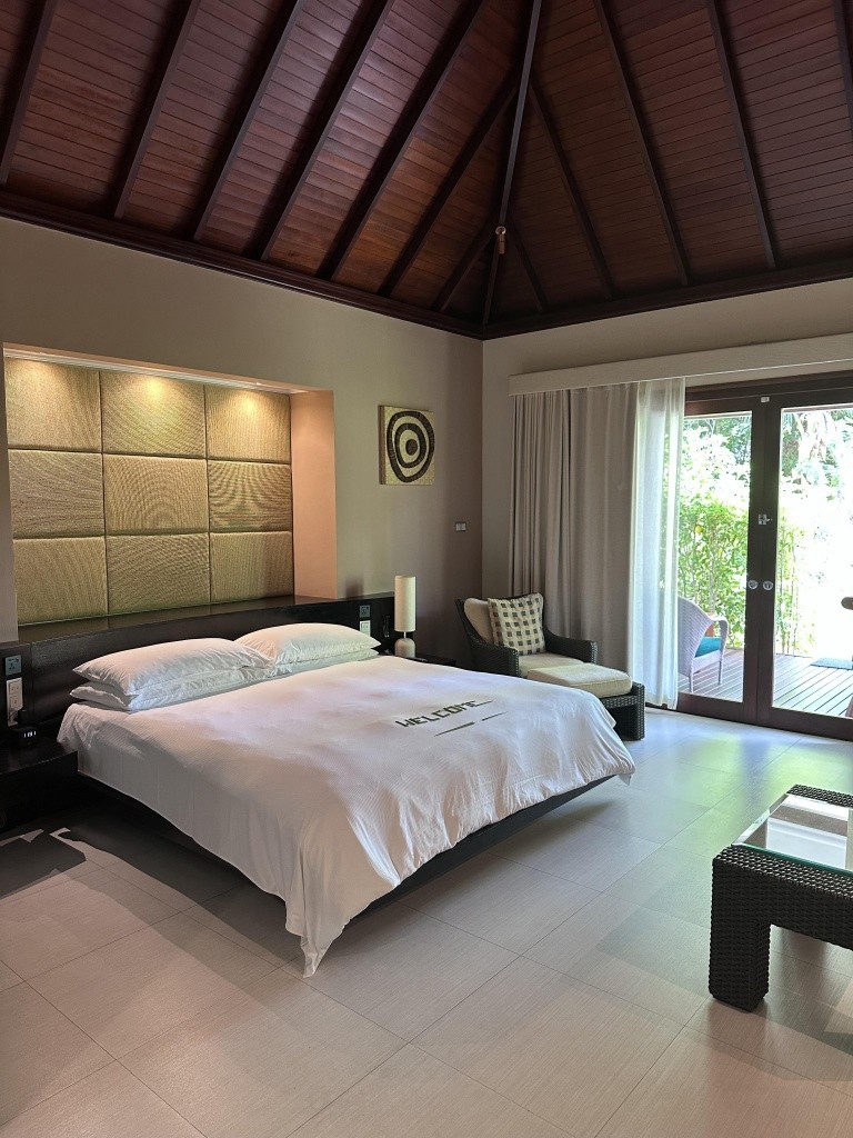 A king garden villában szálltunk meg. Ez egy olyan villa, amelynek nincs közvetlen tengerparti bejárata, de egy percen belül a parton lehetünk. A villát gyönyörű növényzet veszi körül. A szobában egy nagy franciaágy, széf, fürdőkád, zuhanyzó és kültéri zuhanyzó volt. Hajszárító, fürdőköpeny, papucs. Csak a klasszikusok.