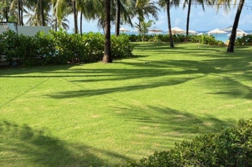Kellemes, sárga homok, pálmafák, napozóágyak és napernyők mindig voltak, még ebéd után is, strandbár, nagyszerű kiszolgálás. A tenger meleg volt, itt-ott úszkált valami, nem hiszem, hogy hal lenne, de lehetséges. Volt egy nagy úszómedence is bárral és egy egész nap nyitva tartó étterem a strand mellett.