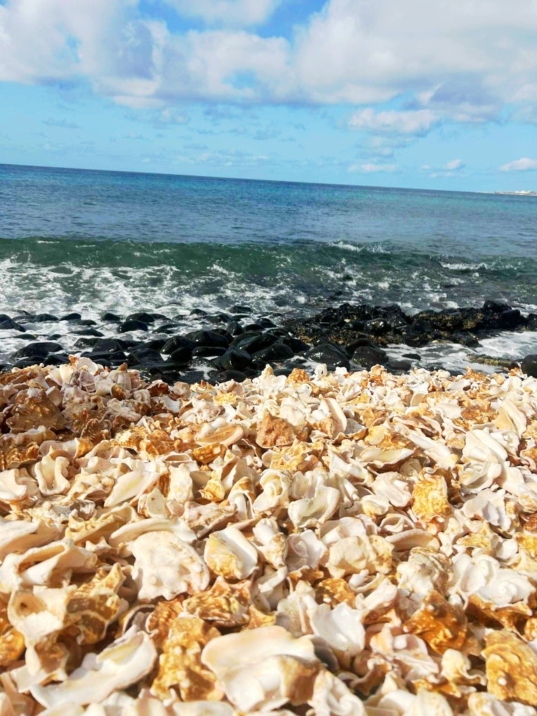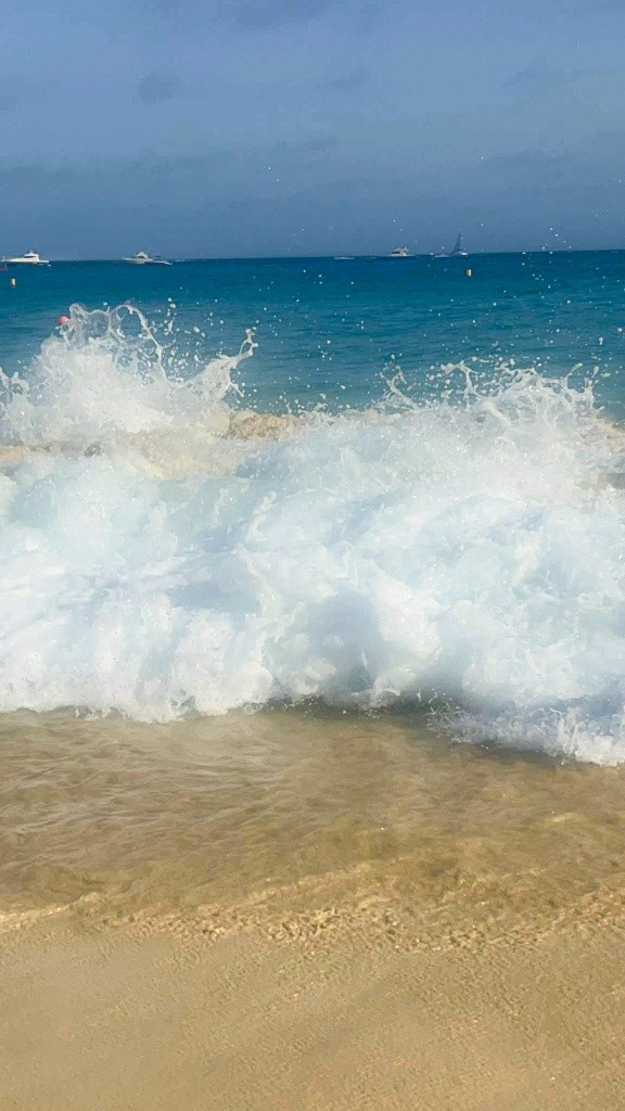 Egy gyönyörű, homokos és széles strand, amely enyhén lejtős az óceánba.